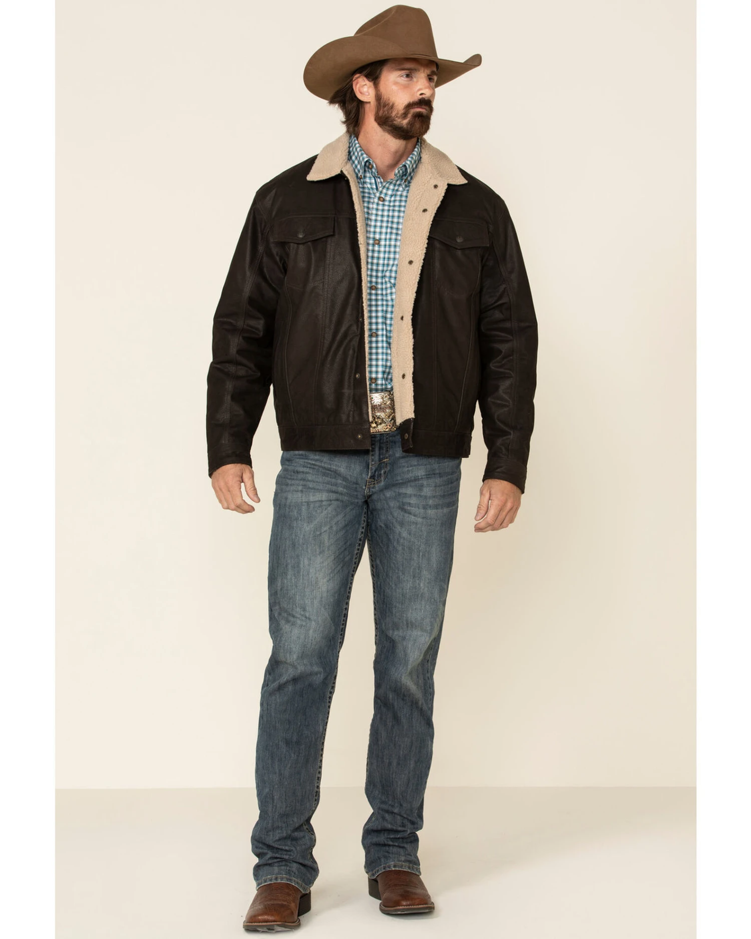Cripple Creek Men’s Leather Sherpa Lined Jacket