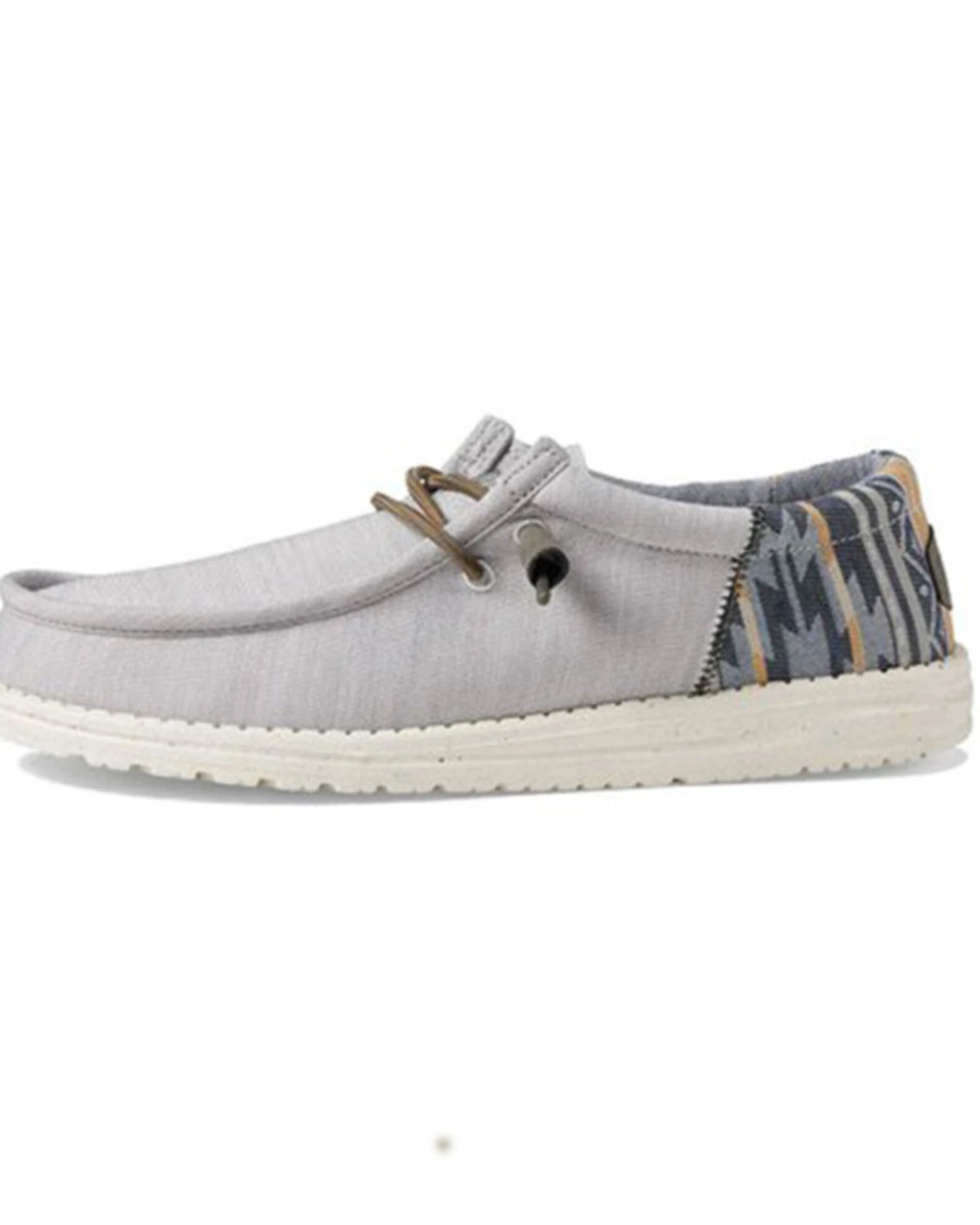- Chambray gray design with HEYDUDE logo patch on heel