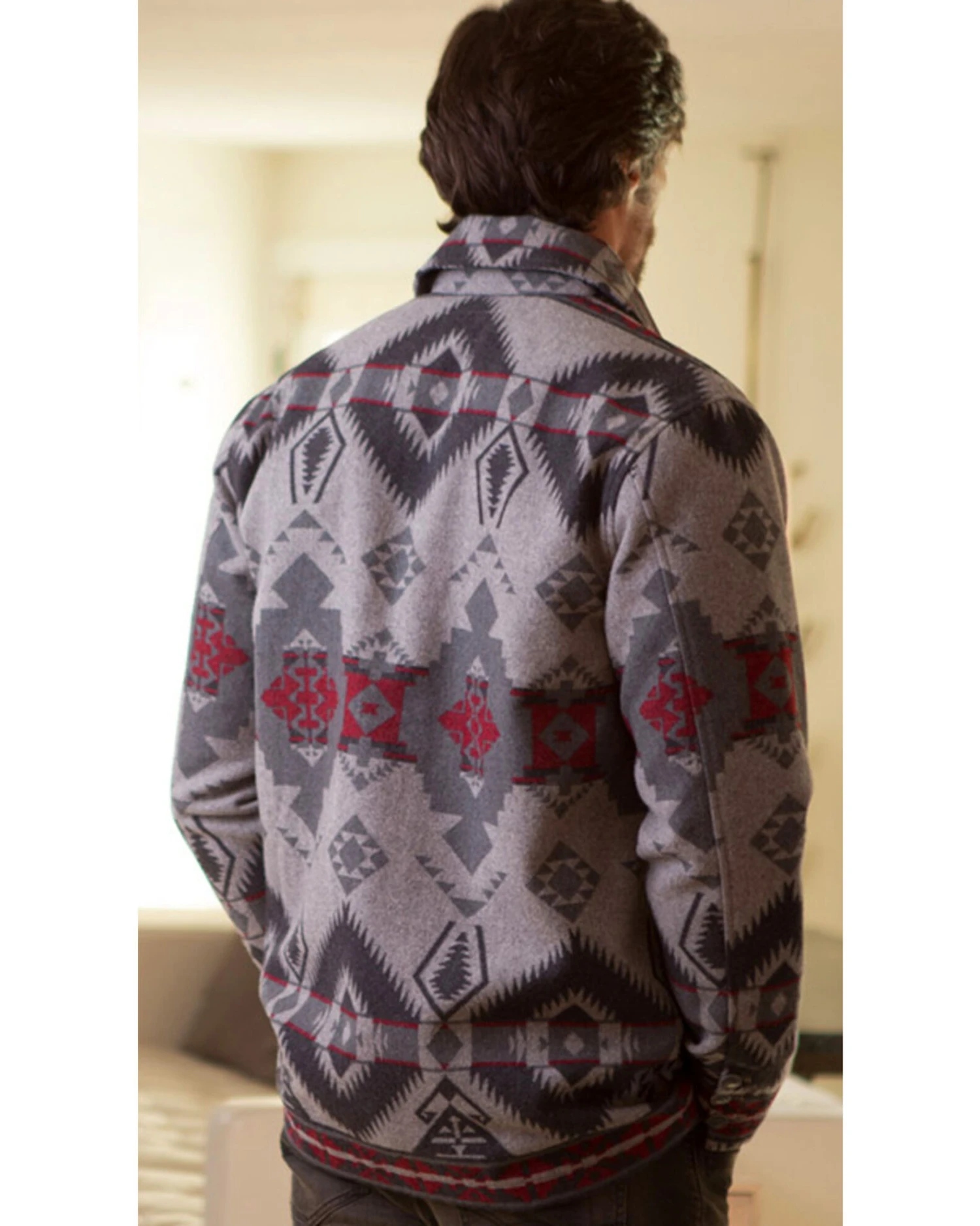 - Light gray with gray and burgundy Southwestern print